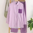 M-5xl Kadın Giyim İlkbahar Yaz Uzun Kollu Üst + Pantolon Yeni Çizgili Tek Sıra Yaka Gömlek + Geniş Paça Pantolon 2 Adet Mor
