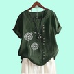 Kadın Günlük Çiçek Baskılı Bol Bluz Bayan Pamuk Keten Üst Moda Kısa Kollu Tişört Asker Yeşili