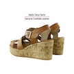 Erkan Saçmacı Xena Taba Hakiki Dana Derisi Mantar Taban Görünümlü Dolgu Topuklu Gladyatör Sandalet Taba