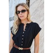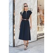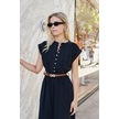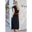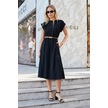 Kadın Yumuşak Dokulu İpeksi Modal Kumaş Hakim Yaka Beli Lastikli Önü Düğmeli Diz Altı Elbise-siyah Siyah