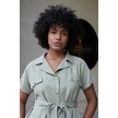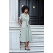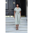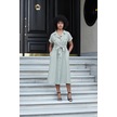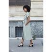 Kadın İpeksi Modal Kumaş Yakalı Düşük Omuzlu Apoletli Yan Cepli Kemerli Diz Altı Boy Uzun Elbise-açık Haki A.haki
