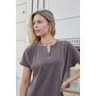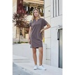 Kadın Modal İpeksi Hafif Esnek Kumaş Geniş Sıfır Yaka Patlı Düşük Omuzlu Yan Cepli Diz Boy Elbise-kahve Kahve