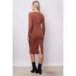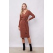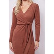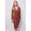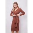 Kadın Hafif Likralı Triko Kruvaze Anvelop Bağcıklı Uzun Kol Diz Altı Uzun Elbise-fındık Kabuğu Fındık Kabuğu