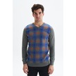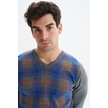 Arma Erkek Slim Fit Likralı Akrilik Kumaş V Yaka Kareli Kazak K0kro0860 Gri-g9 Gri