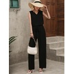 Leyla Sanat Sanata Yeni Bir Bakış Açısı Kadın Kolsuz V Yakalı Aerobin Bluz Ve Belden Kuşaklı Pantolon Ikili Takım Siyah