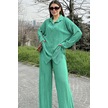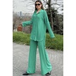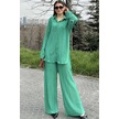 Kadın Yeşil Uzun Tunik Gömlek & Beli Lastikli, Bol Paça Pantolon - Salaş Bürümcük Takım Benetton