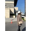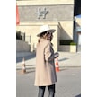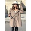 Kadın Kahve Astarlı, Kruvaze Ceket Yaka, Tek Düğme, Rahat Kalıp, Fitilli Kaşe Kumaş Kaban Kahve