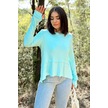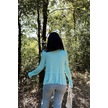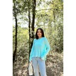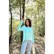 Kadın Mint Elleri Eldiven Detaylı, Asimetrik Kesim, Bisiklet Yaka, Eteği Pliseli, Salaş Spor Bluz Mint