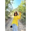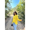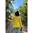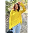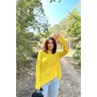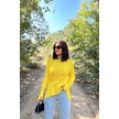 Kadın Sarı Elleri Eldiven Detaylı, Asimetrik Kesim, Bisiklet Yaka, Eteği Pliseli, Salaş Spor Bluz Sari