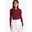 Defacto Slim Fit Dar Kesim Basic Düz Fitilli Kaşkorse Uzun Kollu Tişört E5767ax25aubr115 Bordo