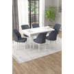 Arel Beyaz 80x132 Açılabilir Mdf Masa Yemek Odası Takımı, Mutfak Takımı 6 Adet Sandalye Beyaz Masa - 6 Füme - Beyaz Ayak