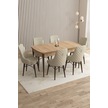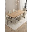 Mazaka Meşe Desen 80x132 Açılabilir Mdf Masa Yemek Odası Takımı, Mutfak Takımı 6 Adet Sandalye Krem