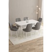 Mazaka Beyaz 80x132 Açılabilir Mdf Masa Yemek Odası Takımı, Mutfak Takımı 6 Adet Sandalye Gri