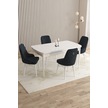 Mazaka Beyaz 80x132 Açılabilir Mdf Masa Yemek Odası Takımı, Mutfak Takımı 4 Adet Sandalye Antrasit