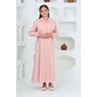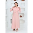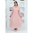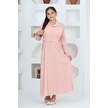 Kız Çocuk Uzun Boy Gofre Kumaş Jile & Elbise İki Parça Takım Astarlı Zarif Set-4948 Pudra