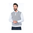 Kamalı Erkek Çelik Örgü Gömlek Yaka Fermuarlı Polo Yakalı Çizgili Desen Tüylenmeyen Triko Kışlık Baba Kazak Beyaz