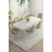 Meri Serisi Beyaz 80x132 Açılabilir Mdf Masa Yemek Odası Takımı, Mutfak Masa Takımı 6 Adet Sandalye Krem