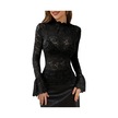 Kadın Üst Giyim Dik Yaka Alevli Uzun Kollu Dar Kesim Gömlek Düz Renk Şeffaf Oyuk Nakış Dantel Çiçek Desenli Üstler Siyah