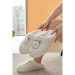 Ft 103 Panda Nakışlı Kadın Ev Terliği Peluş Terlik Çeyiz Ve Bohça Terliği Ses Yapmaz Kalın Taban Beyaz