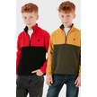 Lela Yumuşak Dokulu Yarım Fermuarlı Renk Bloklu Dik Yaka 2'Li Paket Çocuk Polar 5905004S2 Hardal Haki-Kırmızı Siyah