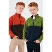 Lela Yumuşak Dokulu Yarım Fermuarlı Renk Bloklu Dik Yaka 2'Li Paket Çocuk Polar 5905004S2 Orange Antrasit-Yeşil Lacivert