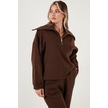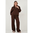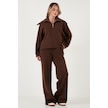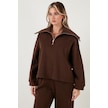 Lela Pamuklu Oversize Fit Yarım Fermuarlı Yaka Uzun Kollu Triko Bayan Takım 68351218 Kahve