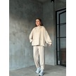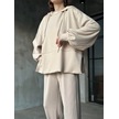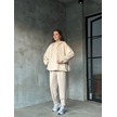Kadın Oversize Fermuarlı Kapüşonlu Sweatshirt Pileli Paça Tesettüre Uygun Spor Şık Eşofman Takımı Bej