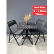 Mercan Siyah Mermer 2 Kişilik Kare Mutfak Yemek Masası Takımı 2+1 Keten Gri 60 Cm Siyahmermer Gri 2'li