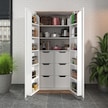 90 Derece Açılabilir 2 Kapaklı, 6 Çekmeceli, Kavanoz Raflı Kiler Ve Erzak Mutfak Dolabı Atlantik Çam Beyaz