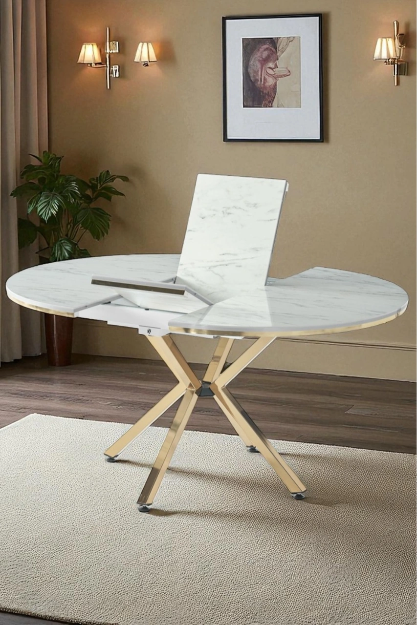 Dengema Zenit Plus Açılır Yuvarlak Masa Sandalyesiz Beyaz Mermer, Gold Ayak, Ø120 160 Cm Beyaz Mermer - Gold Ayak