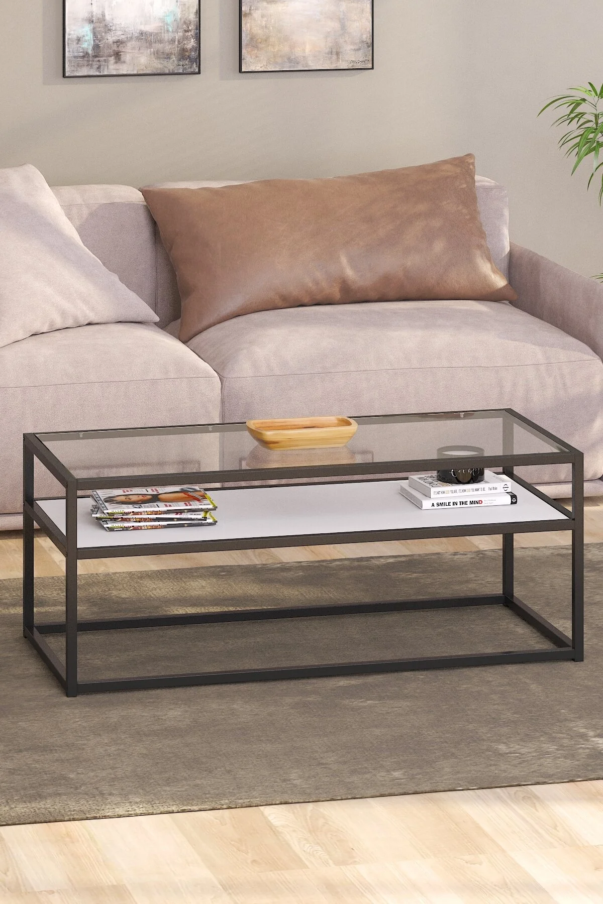 Modern Metal Iskeletli Temper Camlı 2 Katlı Dikdörtgen Orta Sehpa Beyaz-siyah-şeffaf