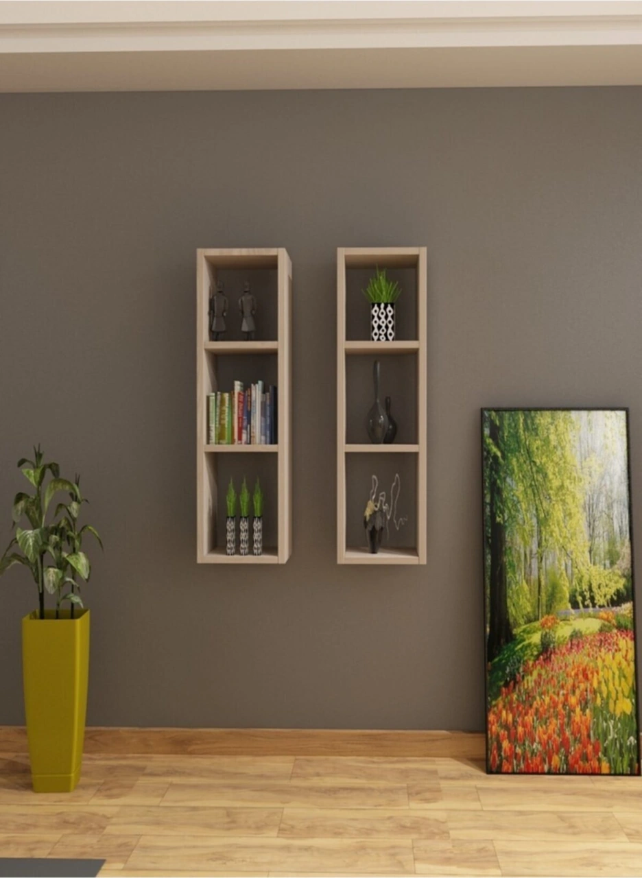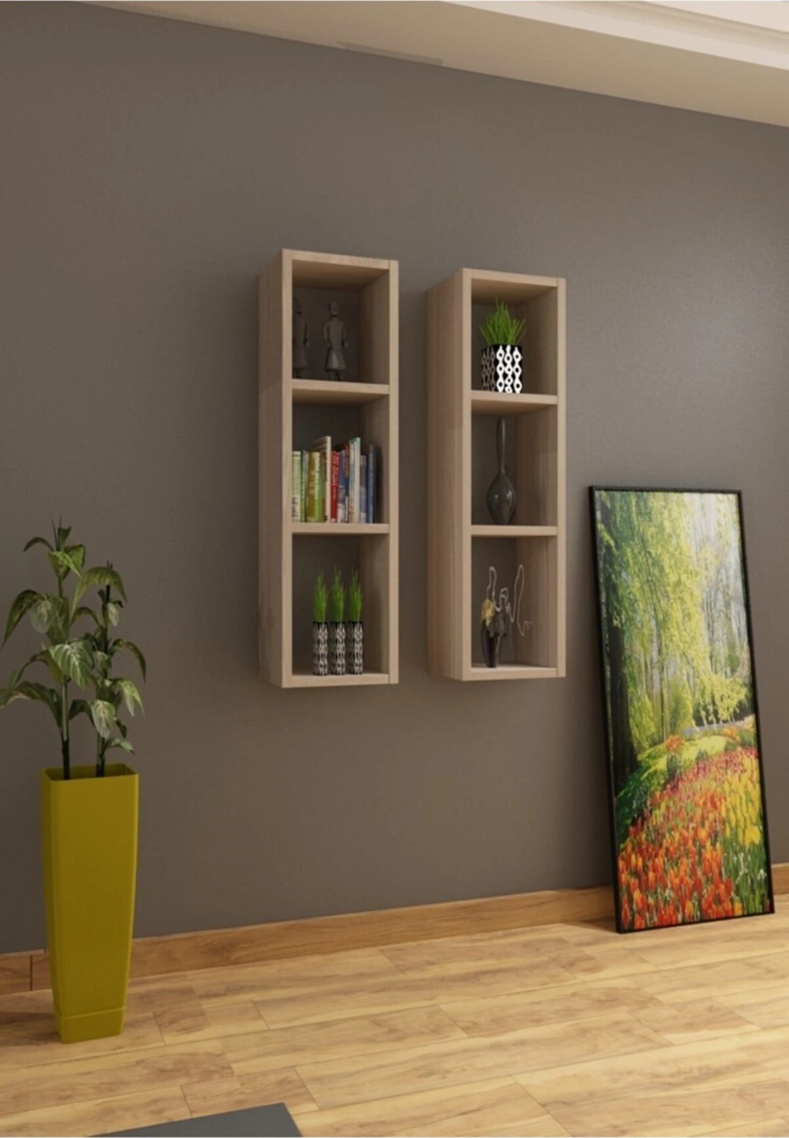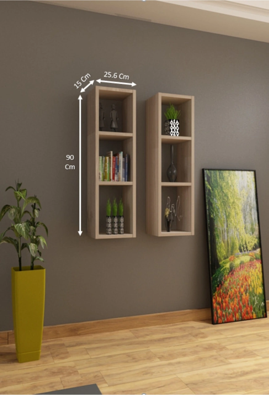 Kitaplık Açık Kahve Duvar Rafı Takım Meşe