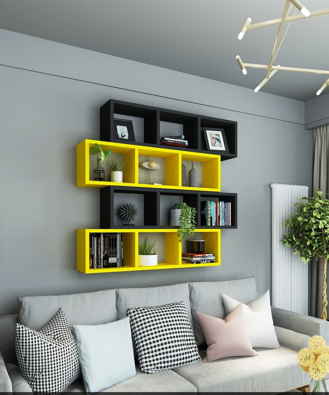 Kitaplık Lux Yatay Duvar Rafı Sarı Siyah 4 Lü Takım Sarı Siyah