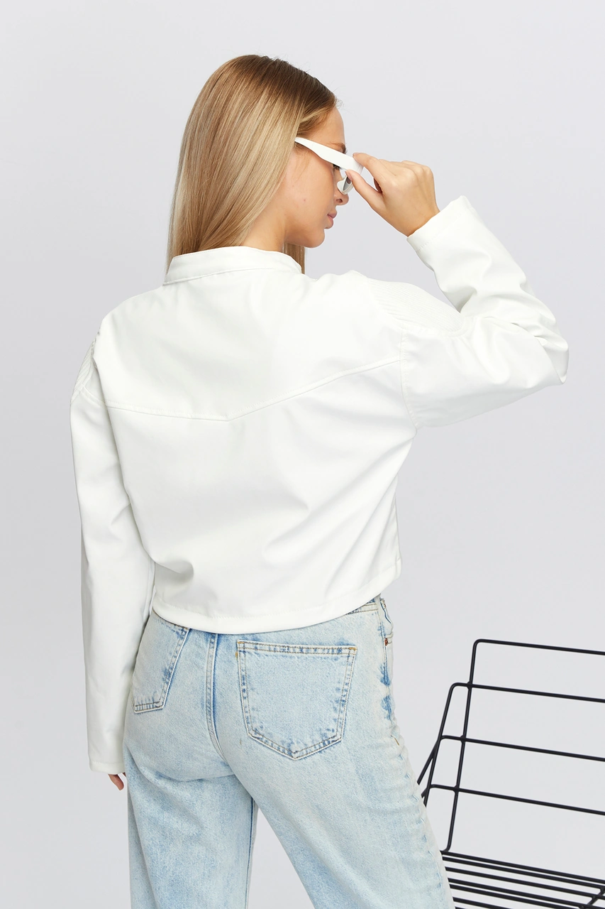 Kadın Oversize Fermuarlı Yaka Çıt Çıtlı Omuz Ve Etek Beyaz Desenli Kolej Yarışçı Ceket Motorcu Mont Beyaz