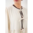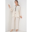 Kadın Önü Bağcıklı Tunik Pantolon İkili Takım 6744 - Ekru ekru