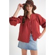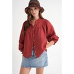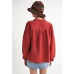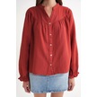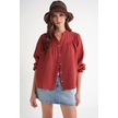 4733 Kadın Büzgü Robalı Uzun Kol Müslin Gömlek Kızılcık Kızılcık