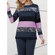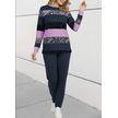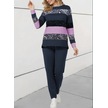 Evyora Kadın Uzun Kollu Bisiklet Yaka Çizgili Desen Iki Iplik Bluz Ve Pantolon Ikili Takım Pembe