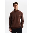 Arma Erkek Slim Fit Dik Yaka Yarım Fermuar Pamuklu Sweatshirt Sol Kol Fermuar Cepli K30404685702 Kahverengi