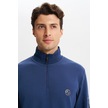 Arma Erkek Slim Fit Dik Yaka Yarım Fermuar Pamuklu Sweatshirt Sol Kol Fermuar Cepli K30404685702 İndigo-i1