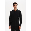 Arma Erkek Basic Slim Fit Fermuarlı Polo Yaka Sweatshirt İnce Modal Pamuk Elastan Karışımlı Örme İnterlok Kumaş K30554989002 Siyah