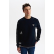 Arma Erkek Regular Fit Karbon Fırçalı Selanik Kumaş Bisiklet Yaka Süs Etiketli Sweatshirt Kazak K30124698802 Lacivert