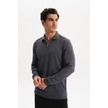 Arma Erkek Basic Slim Fit Fermuarlı Polo Yaka Sweatshirt İnce Modal Pamuk Elastan Karışımlı Örme İnterlok Kumaş K30554989002 Gri