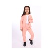Kız Çocuk 2'li Takım Nakış Baskılı Bebe Yaka Fermuarlı Sweatshirt & Beli Lastikli Bol Paça Eşofman Altı - 3 İplik Şardonlu Somon