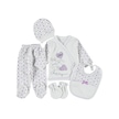 0-3 Aylık 5 Li Tavşan Nakışlı Zıbın Seti Hastane Çıkış Seti %100 Pamuklu Kutusuz Mor