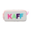 01108 Taş Rengi Pembe Fermuarlı Su Geçirmez Bondit Kumaş Peluş Baskılı Çift Gözlü Kalemlik