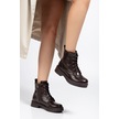 02-2003 Kahve Kırışık Rugan Bağcıklı Fermuarlı Günlük Kadın Bot Kahve