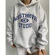 030 Studio Sweatshirt - Gri Baskılı Oversize Kapüşonlu Gri