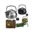 Tcherchi 3 Parça Set Kamp Tencere Seti Açık Pişirme Seti Su Isıtıcısı Tava Pot Sofra Ekipmanları Siyah - Yeşil Siyah