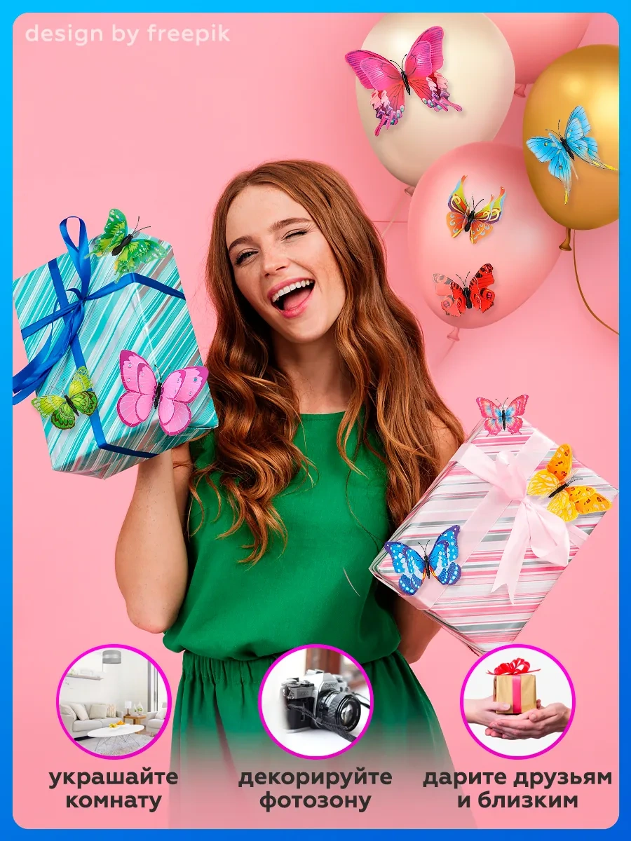 0'stickers Duvar İçin Dekoratif 3d Kelebek İç Mekan Çıkartmaları 186771574 Pembe