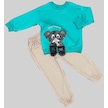1-2-3 Yaş Filli Sallanan Ayak Desenli Likra Penye Kumaş Sweat Pantolonlu Kız Erkek 2li Çocuk Takımı Mint Yeşili